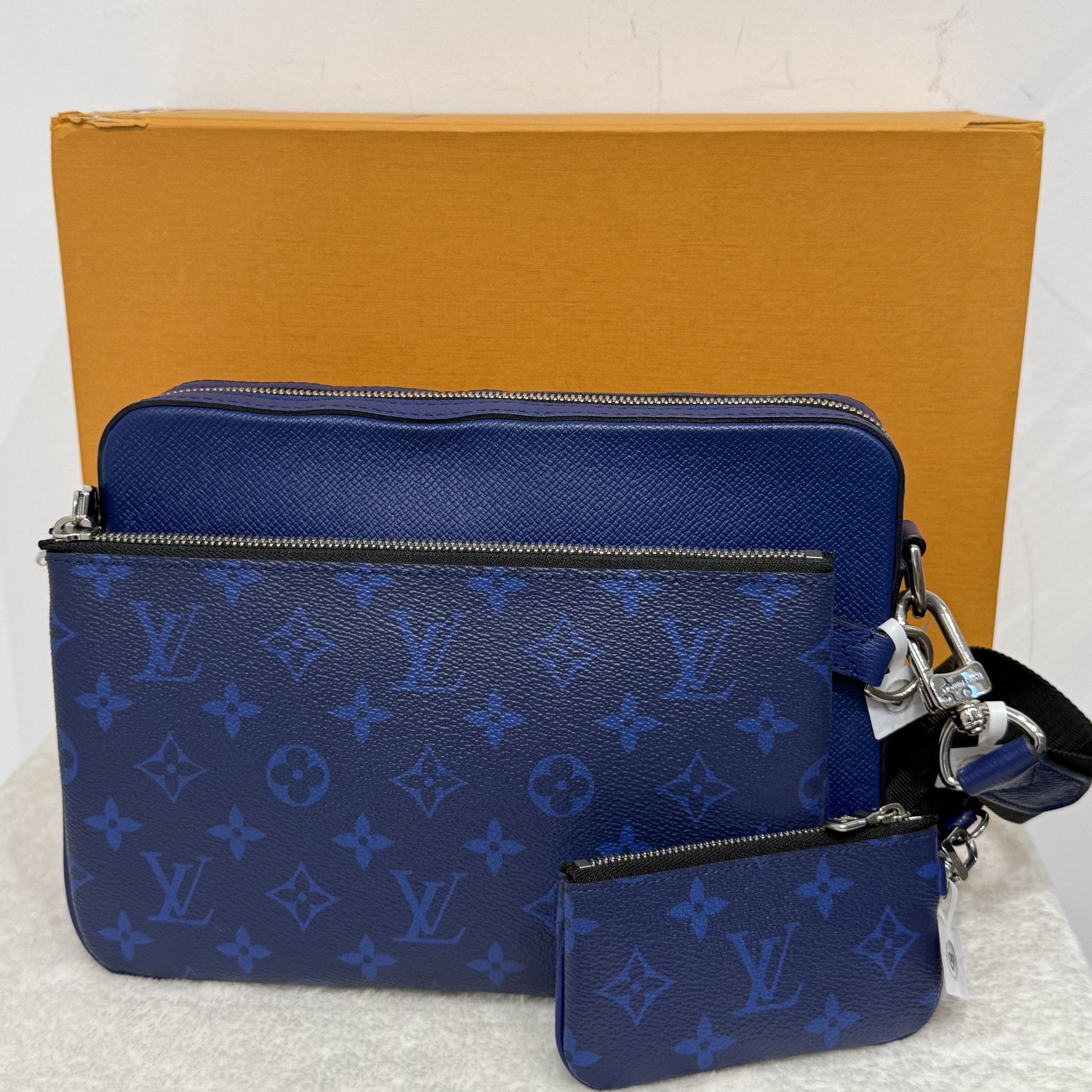 PREOWNED LOUIS VUITTON TRIO MESSENGER TAIGARAMA BLUE (M)